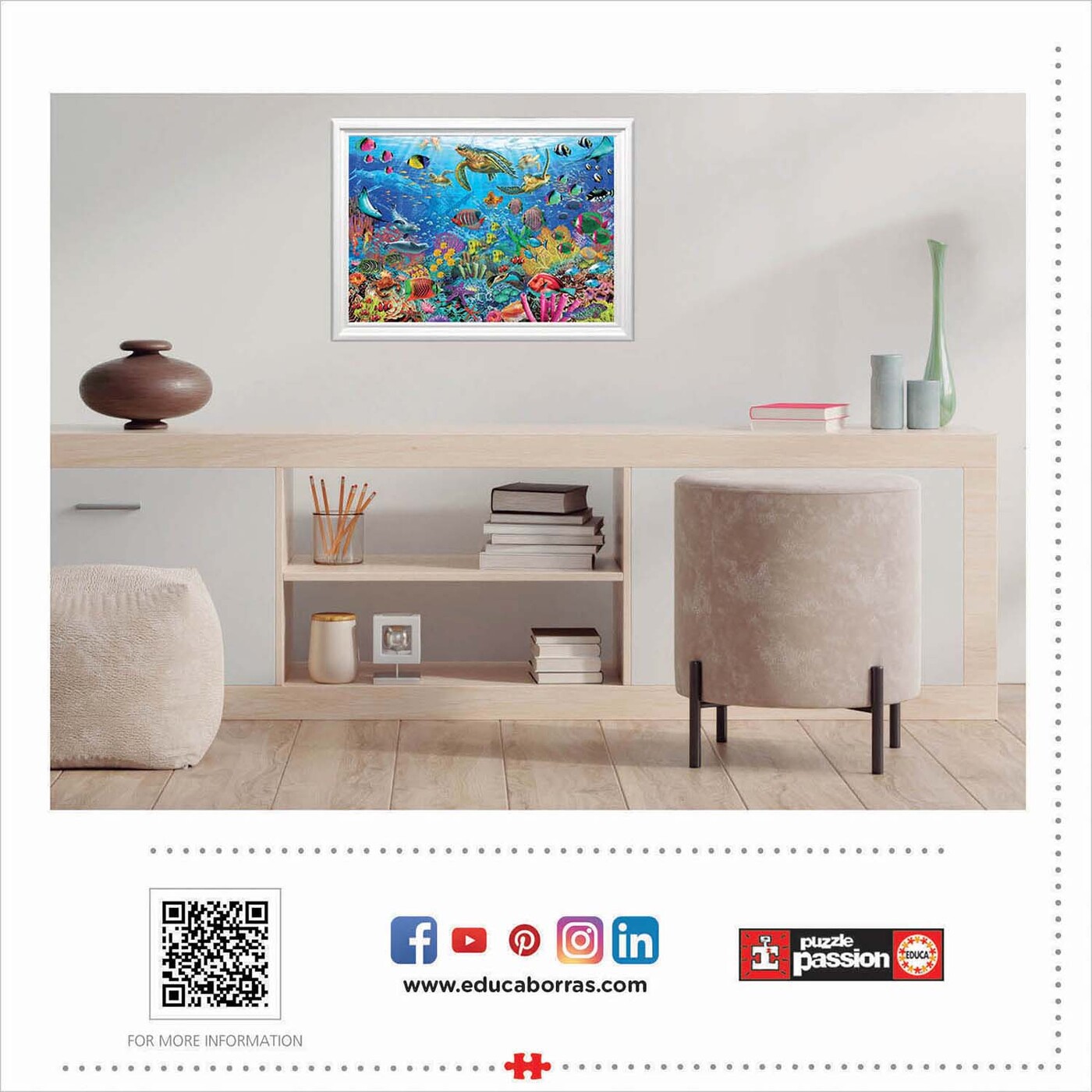 Am Meeresgrund tummeln sich bunte Fische, Wale, Robben, Schildkröten, Rochen, Krabben und Korallen. Entdecke mit dem hochwertigen 1.000-Teile-Puzzle ein farbefrohes Motiv mit zahlreichen Meeresbewohnern und -pflanzen.