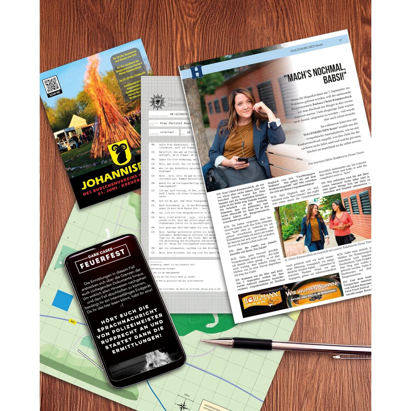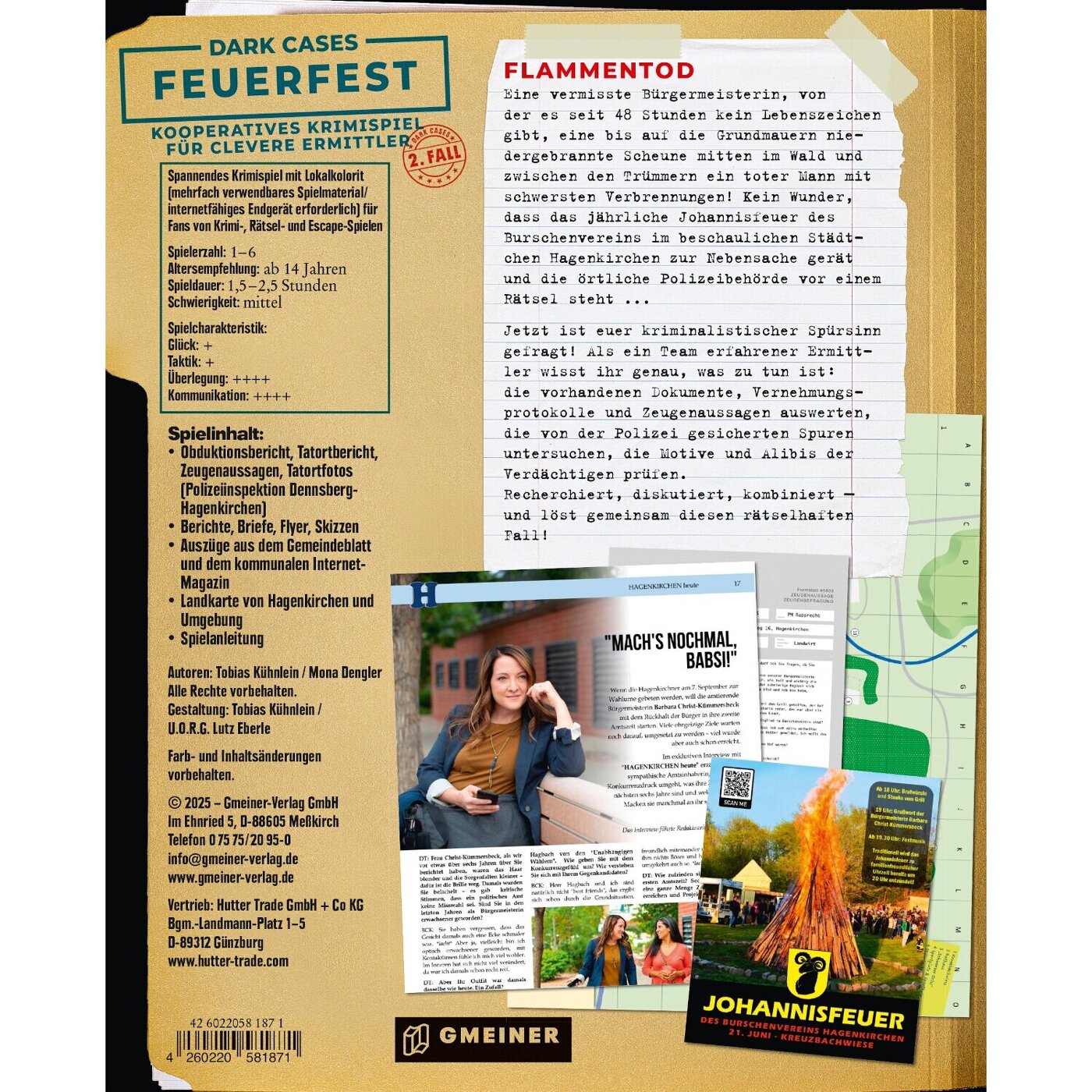 Eine vermisste Bürgermeisterin, von der es seit 48 Stunden kein Lebenszeichen gibt, eine bis auf die Grundmauern niedergebrannte Scheune mitten im Wald und zwischen den Trümmern ein toter Mann mit schwersten Verbrennungen! Kein Wunder, dass das jährliche Johannisfeuer des Burschenvereins im beschaulichen Städtchen Hagenkirchen zur Nebensache gerät und die örtliche Polizeibehörde vor einem Rätsel steht …