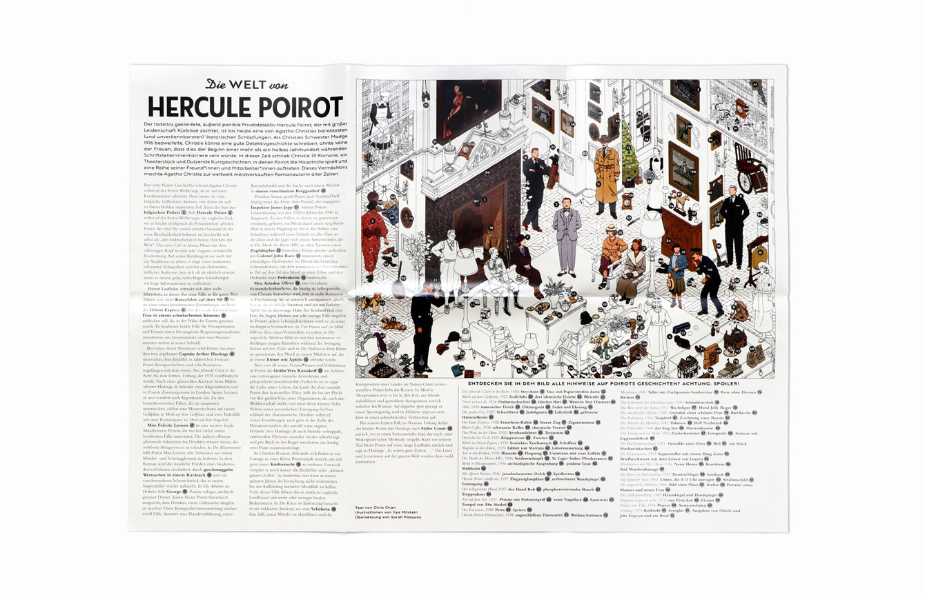 • A2-Poster dient als Vorlage und enthält Fakten aus Agatha Christies Poirot-Erzählungen