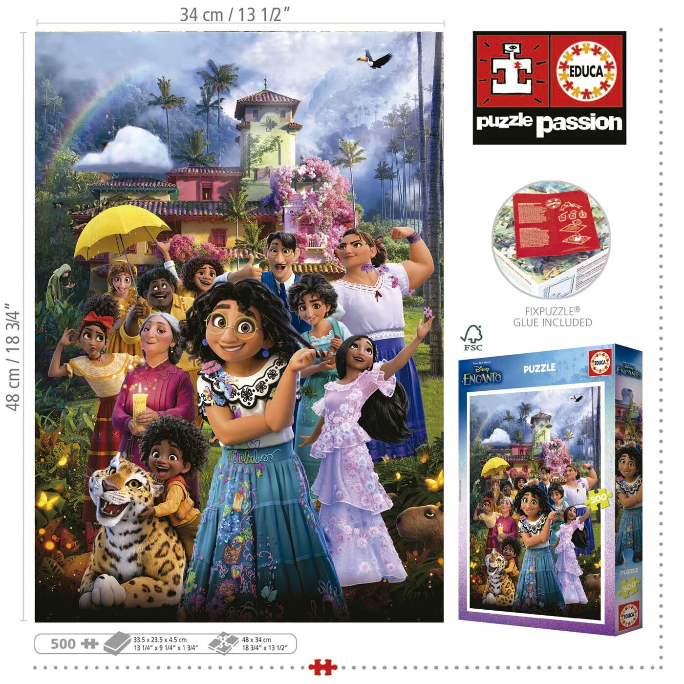Das farbenfrohe Motiv aus dem Disney-Meisterwerk "Encanto" entführt euch in die magische Welt der Familie Madrigal in Kolumbien. Wer ist dein Lieblingscharakter? Was hat dich an dem Film am meisten begeistert? Das Motiv lädt zum Träumen ein und nimmt dich mit in die bunte Welt von "Encanto".