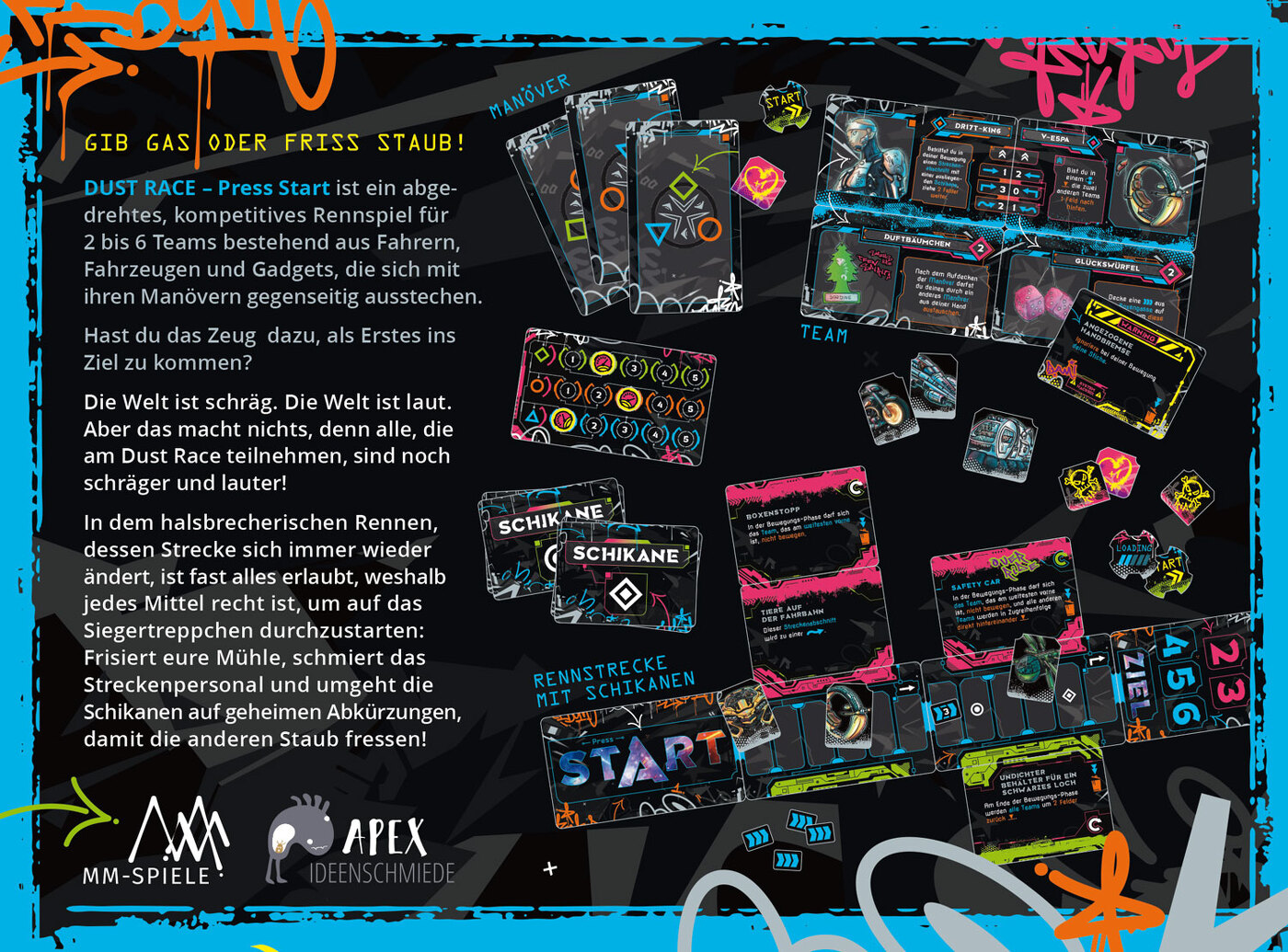 In dem halsbrecherischen Rennen, dessen Strecke sich immer wieder ändert, ist fast alles erlaubt, weshalb den einzelnen Teams jedes Mittel recht ist, um auf das Siegertreppchen durchzustarten: Frisiert eure Mühle, schmiert das Streckenpersonal und umgeht die Schikanen auf geheimen Abkürzungen, damit die anderen Staub fressen!