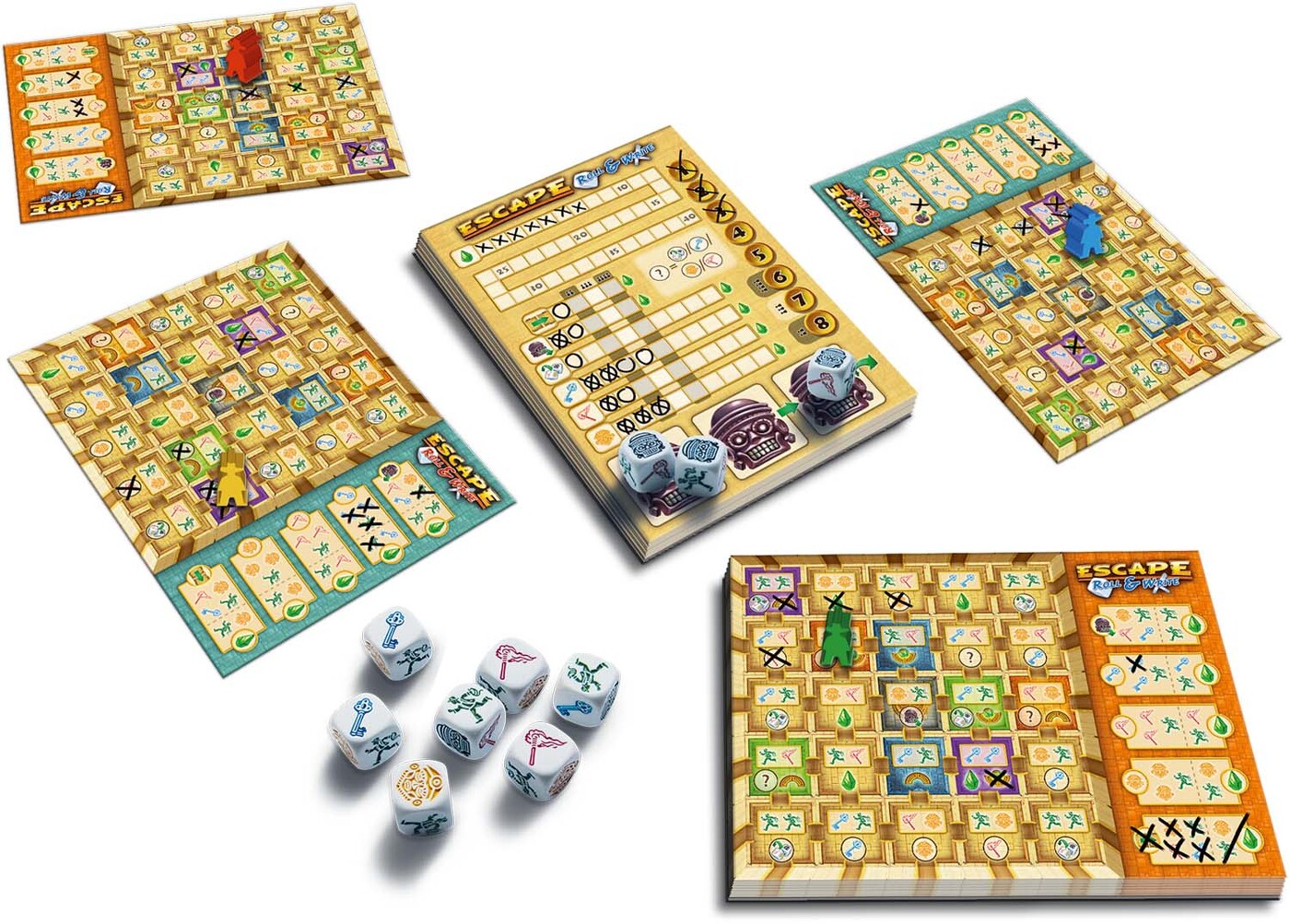 Jeder Spieler erkundet auf der Suche nach dem Ausgang die verschiedenen Kammern des Tempels. Ihr würfelt euch den Weg in die Kammern frei und sammelt dort Bonusaktionen, die euch die Flucht erleichtern. Arbeitet kooperativ als Team, um Geheimkammern zu aktivieren und weitere Edelsteine zu finden – passt auf und lasst euch dabei nicht verfluchen!