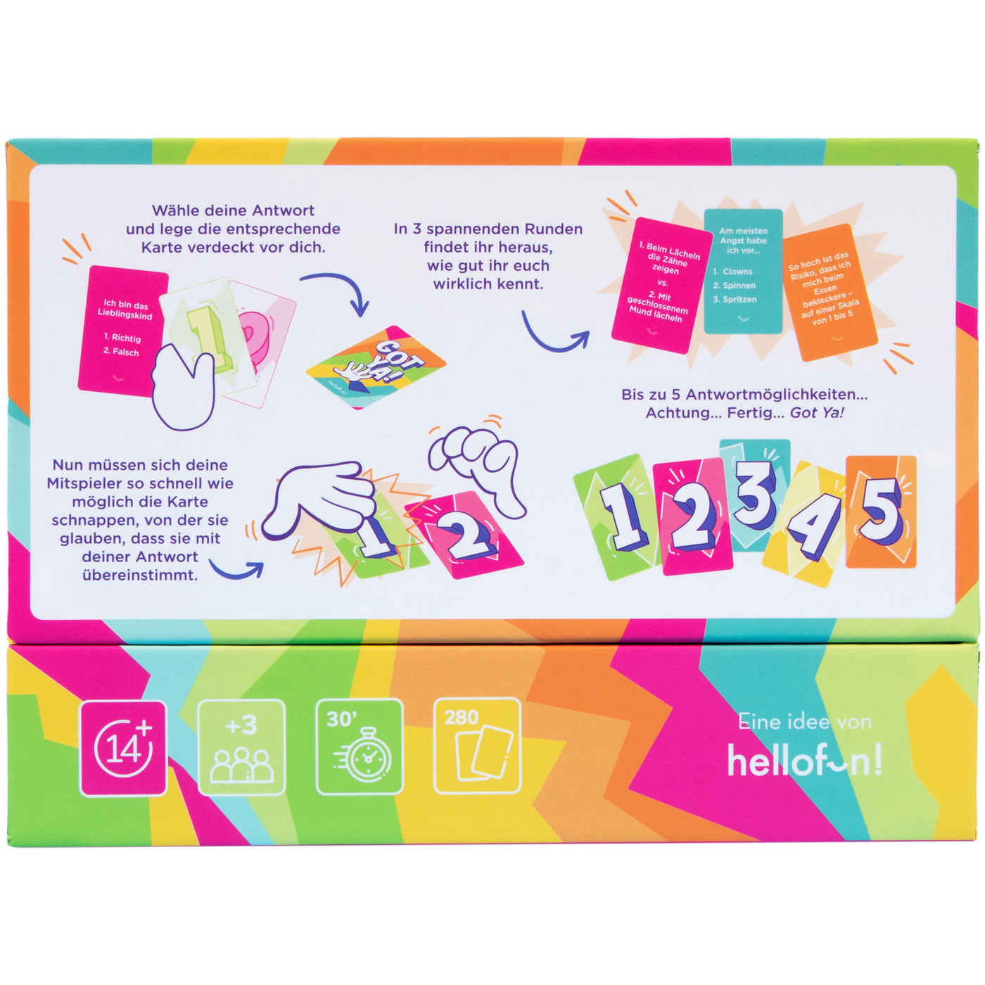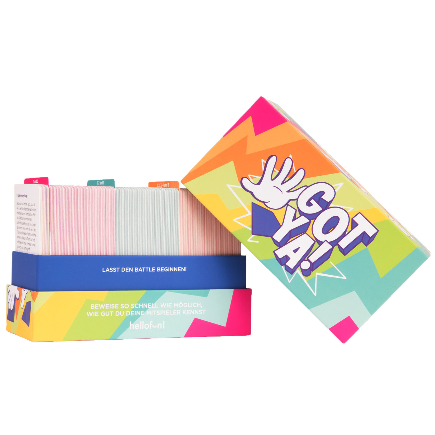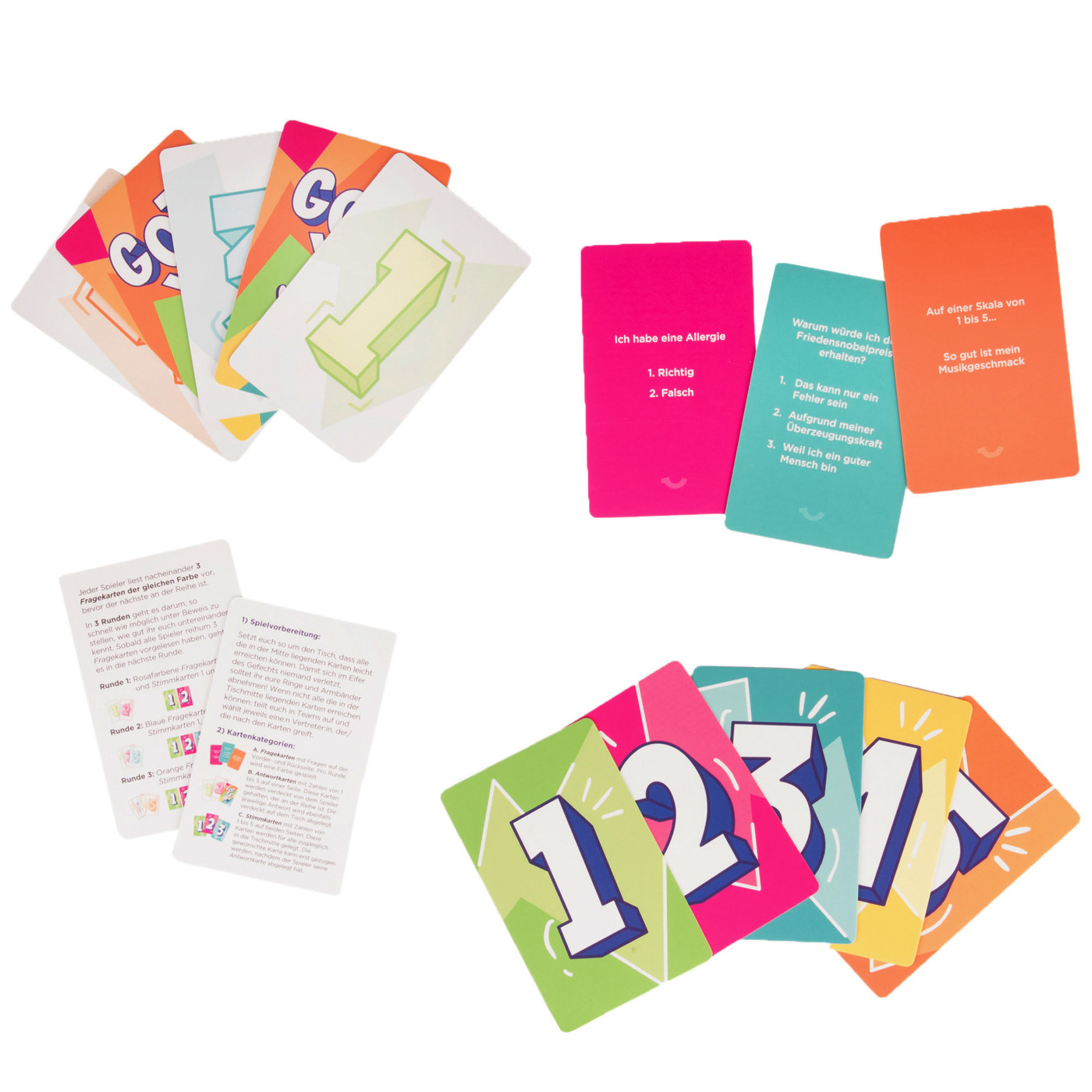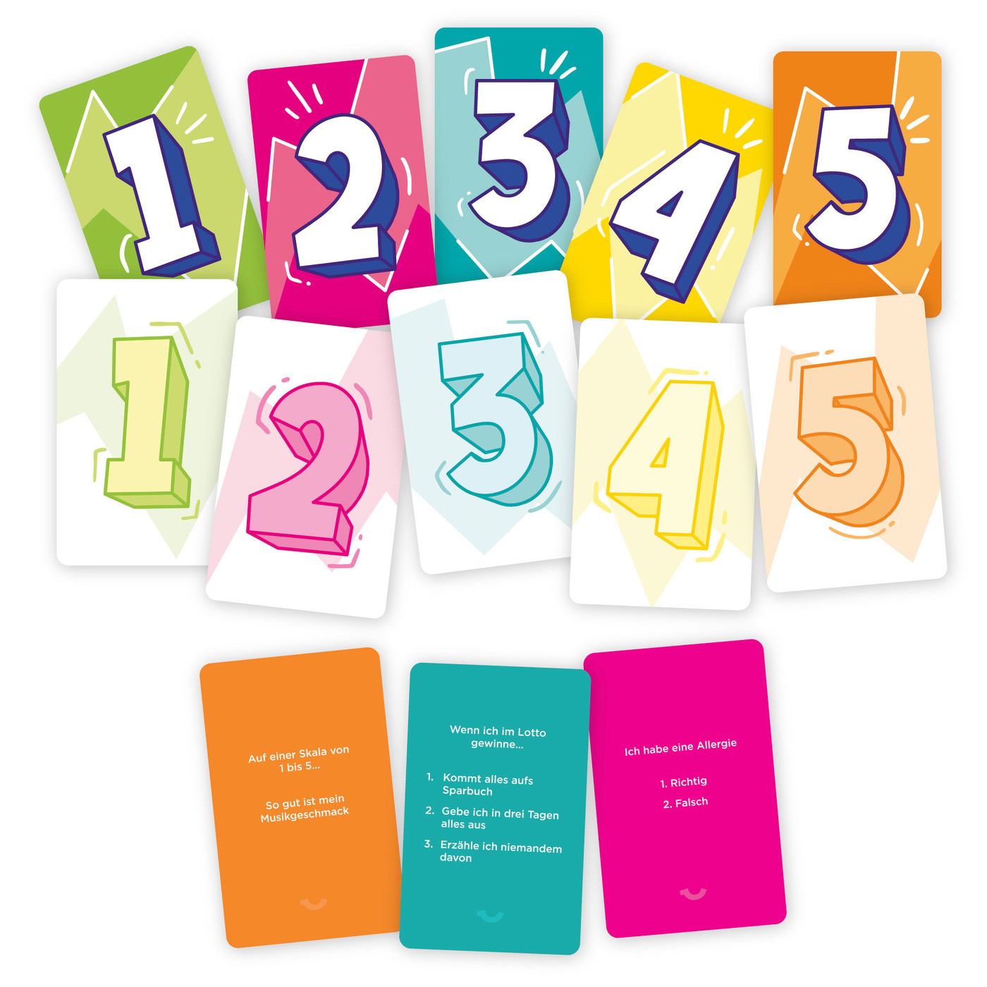 Wähle deine Antwort und lege die entsprechende Karte verdeckt vor dich. Nun müssen sich deine Mitspieler so schnell wie möglich die Karte schnappen, von der sie glauben, dass sie mit deiner Antwort übereinstimmt. In 3 spannenden Runden findet ihr heraus, wie gut ihr euch wirklich kennt. Bis zu 5 Antwortmöglichkeiten…