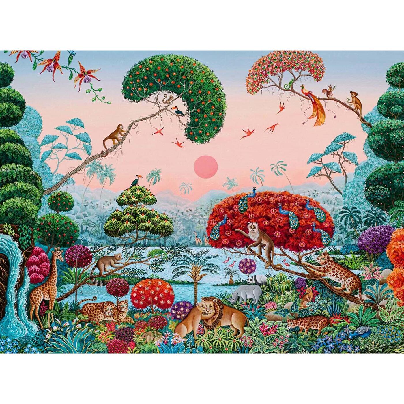 In Marie Amalia Bartolinis Dschungel braucht sich keiner fürchten! Landschaft, Pflanzen, Tiere, sieht alles nach einem allerschönsten Zusammen und Miteinander aus. 1500 Teile; Maße Puzzle: 600 x 800mm