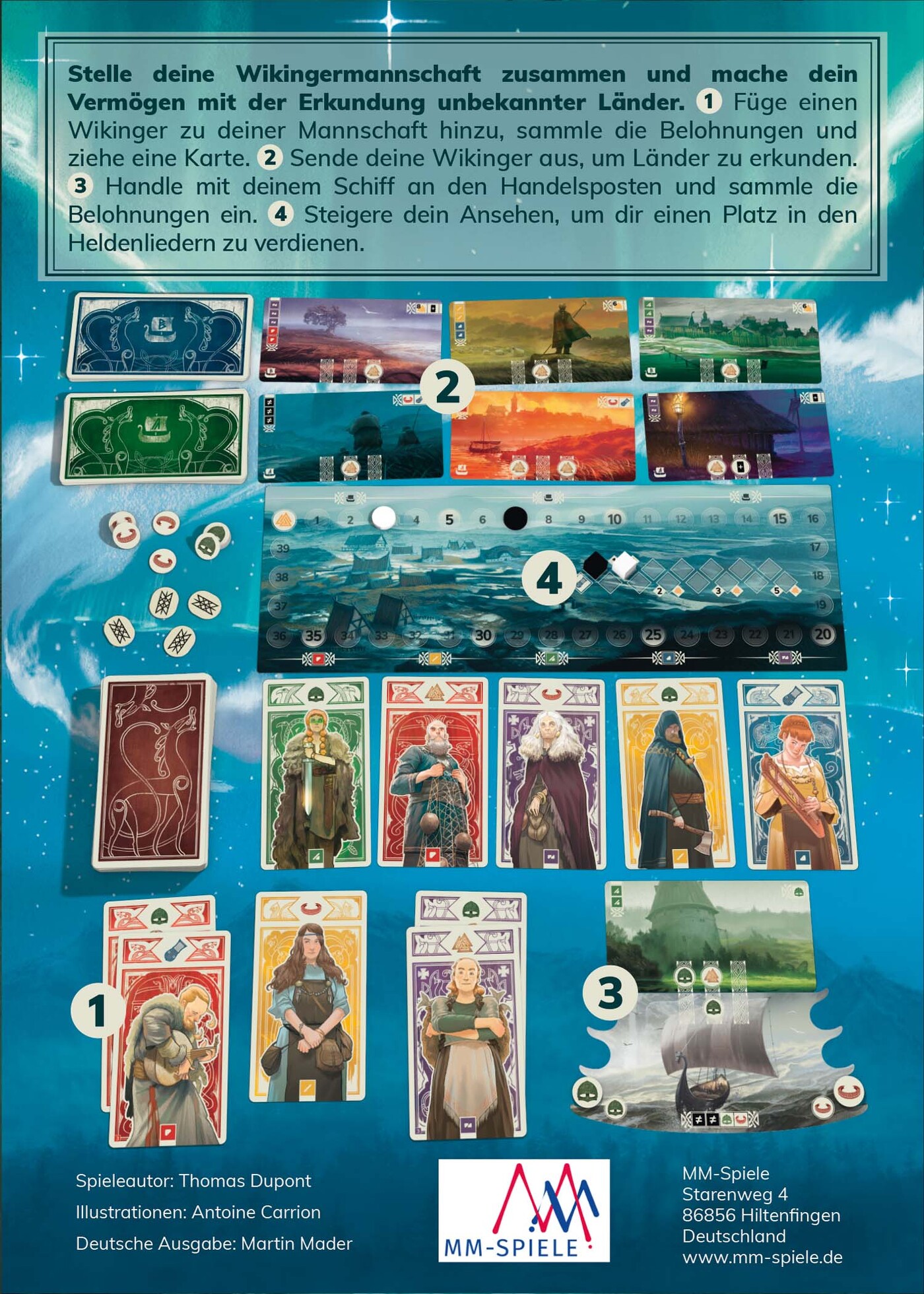 Stelle deine Wikingermannschaft zusammen und mache dein Vermögen mit der Erkundung unbekannter Länder. Füge einen Wikinger zu deiner Mannschaft hinzu, sammle die Belohnungen und ziehe eine Karte. Sind deine Wikinger aus, um Länder zu erkunden. Handke mit deinem Schiff an den Handelsposten und sammle die Belohnungen ein. Steigere dein Ansehen, um dir einen Platz in den Heldenliedern zu verdienen.