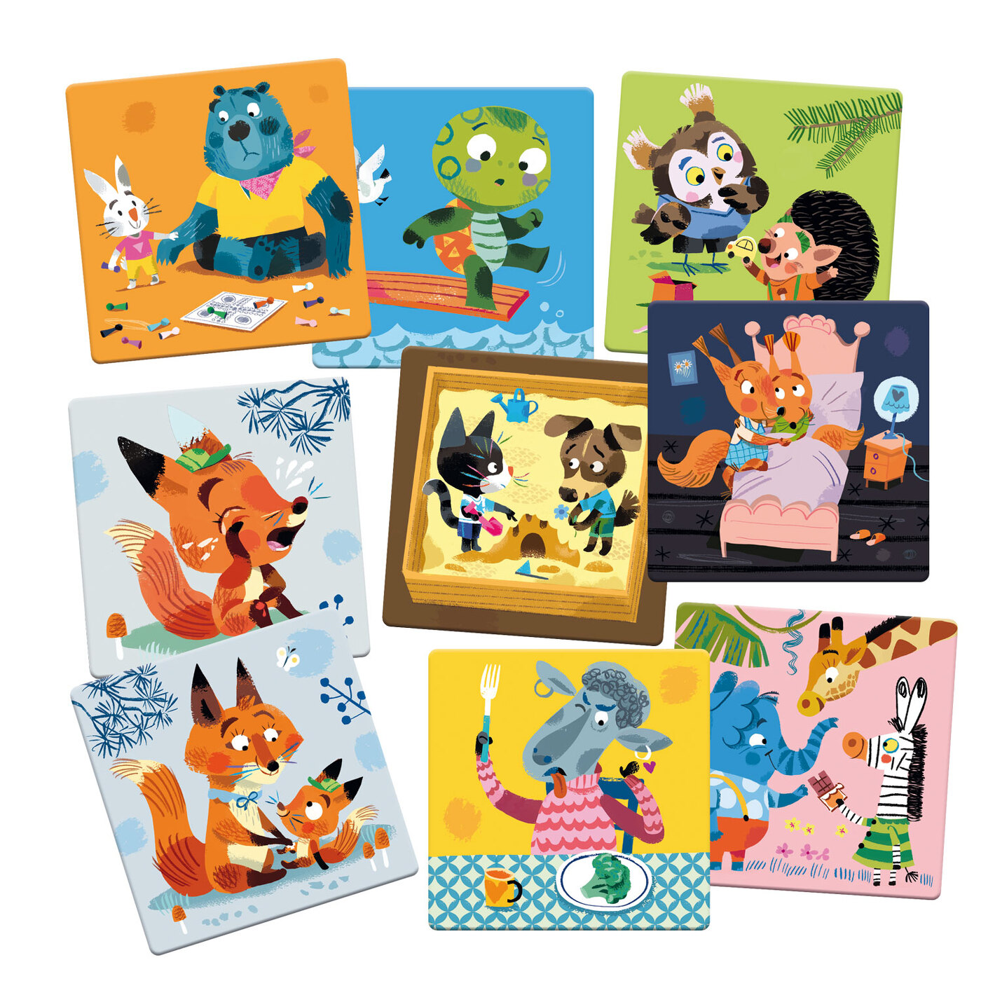Welche Gefühle gehören zusammen? Dieses Memo-Spiel mit extragroßen Karten lädt Kinder dazu ein, über ihre Gefühle zu sprechen und emotionale Alltagssituationen wiederzuerkennen und zu verstehen. Die acht Bildpaare veranschaulichen kindliche Freude, Ängste und Sorgen mithilfe von Ela Smietenkas modernen Tier-Illustrationen. Auf spielerische Weise trainiert dieses Memo nicht nur das Gedächtnis, sondern holt Kinder ab vier Jahren in ihrer Lebens- und Gefühlswelt ab.