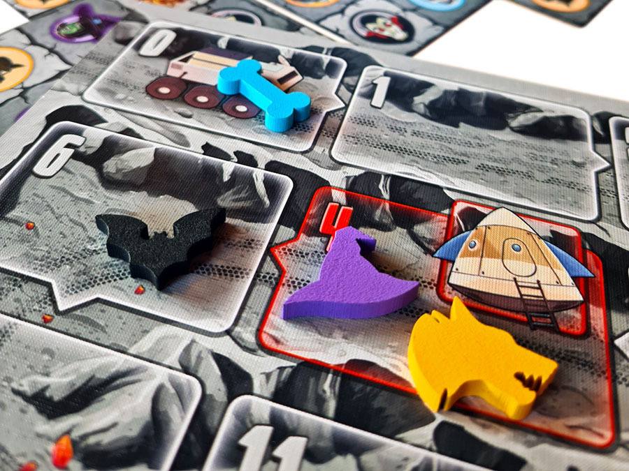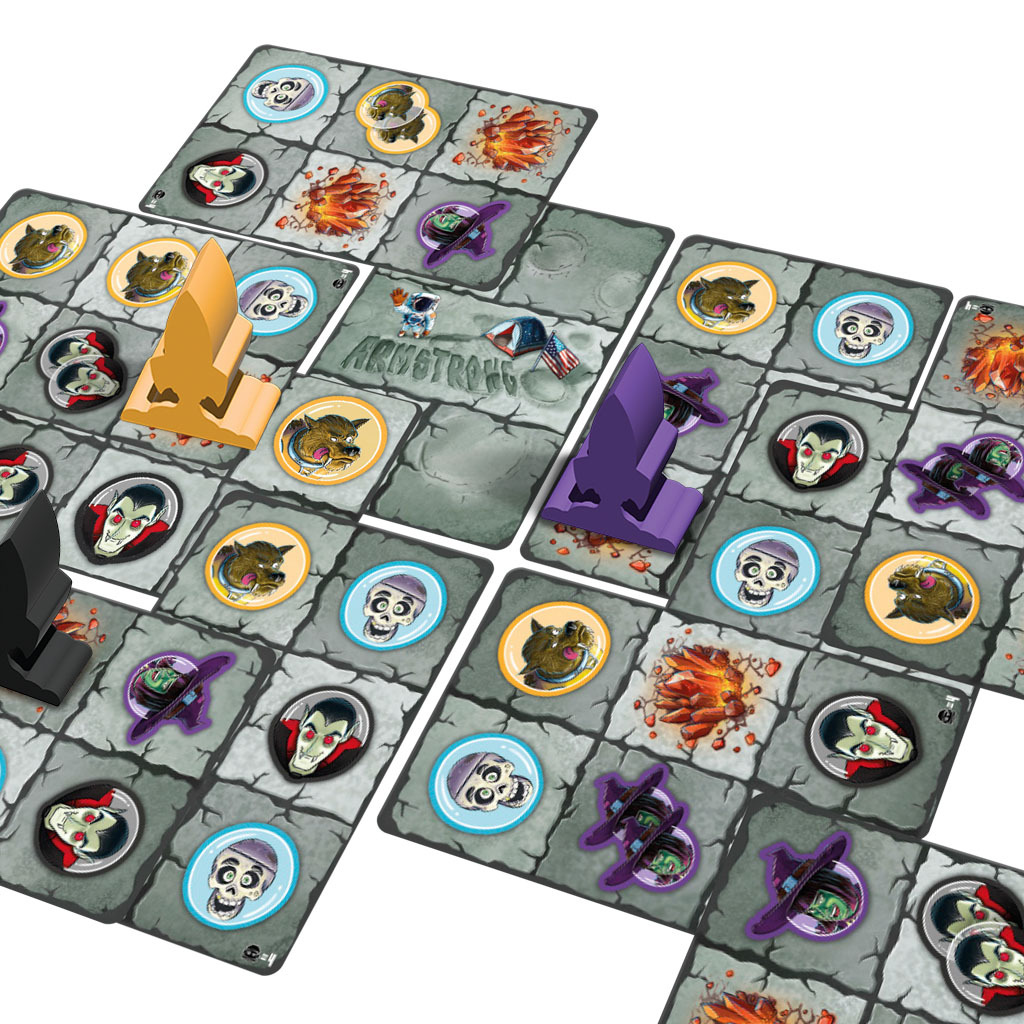 In MONSTERS ON THE MOON, players try to place as many of their monsters on the moon as possible and collect crystals to earn victory points. To do this, they place cards next to or on top of each other, deploy spaceships and use crystal scores, with neighbouring monster groups and collected crystals earning particularly high points. The winner is the player who has earned the most victory points after the intermediate and final scoring—in the event of a tie, the crystal scoring decides the winner.