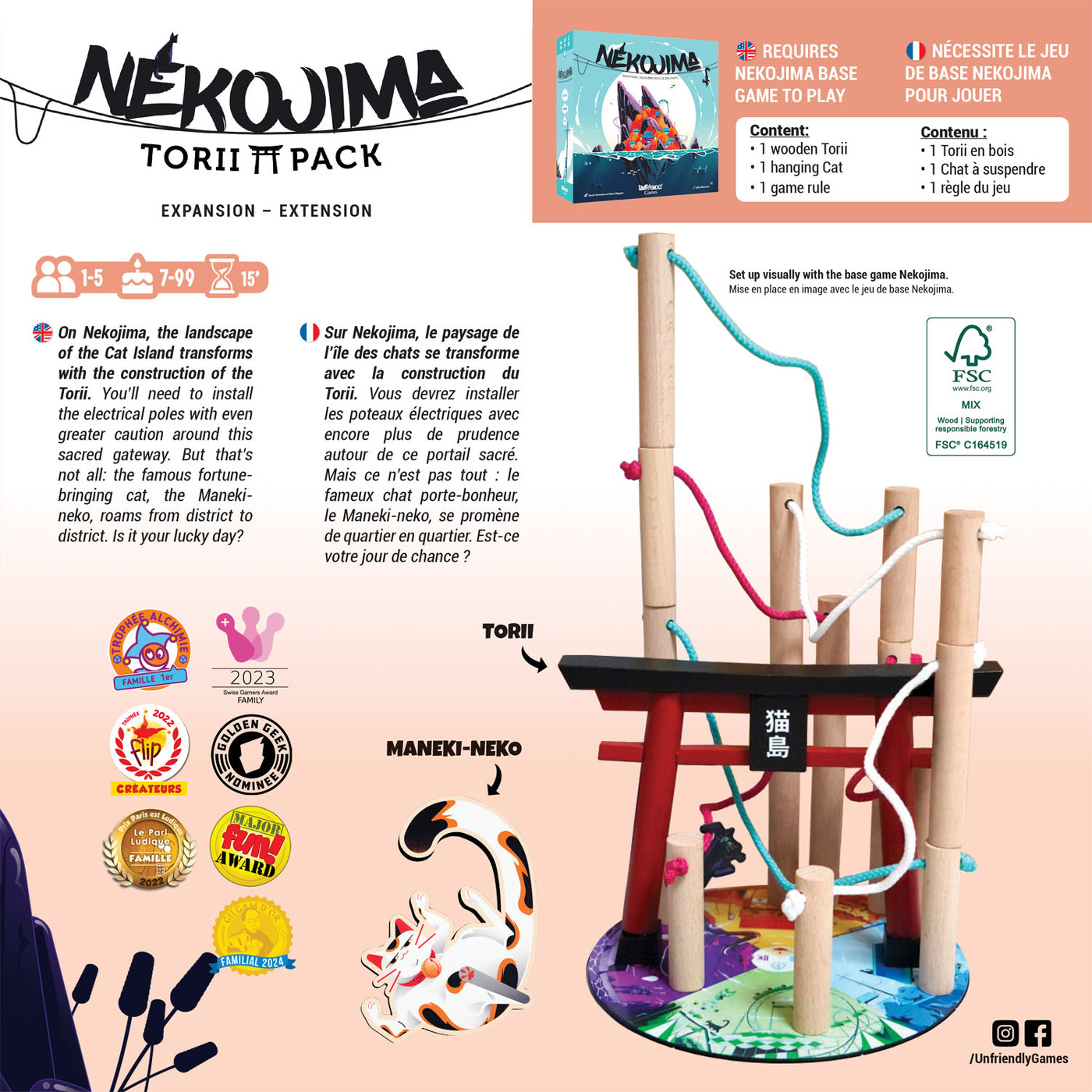 Auf Nekojima verändert sich die Landschaft der Katzeninsel durch den Bau des Torii. In der Umgebung dieses heiligen Tors müssen Sie die Strommasten mit noch größerer Vorsicht aufstellen. Aber das ist noch nicht alles: Die berühmte Glückskatze Maneki-neko streift von Stadtteil zu Stadtteil. Ist heute Ihr Glückstag? ACHTUNG: In englischer Spreache!