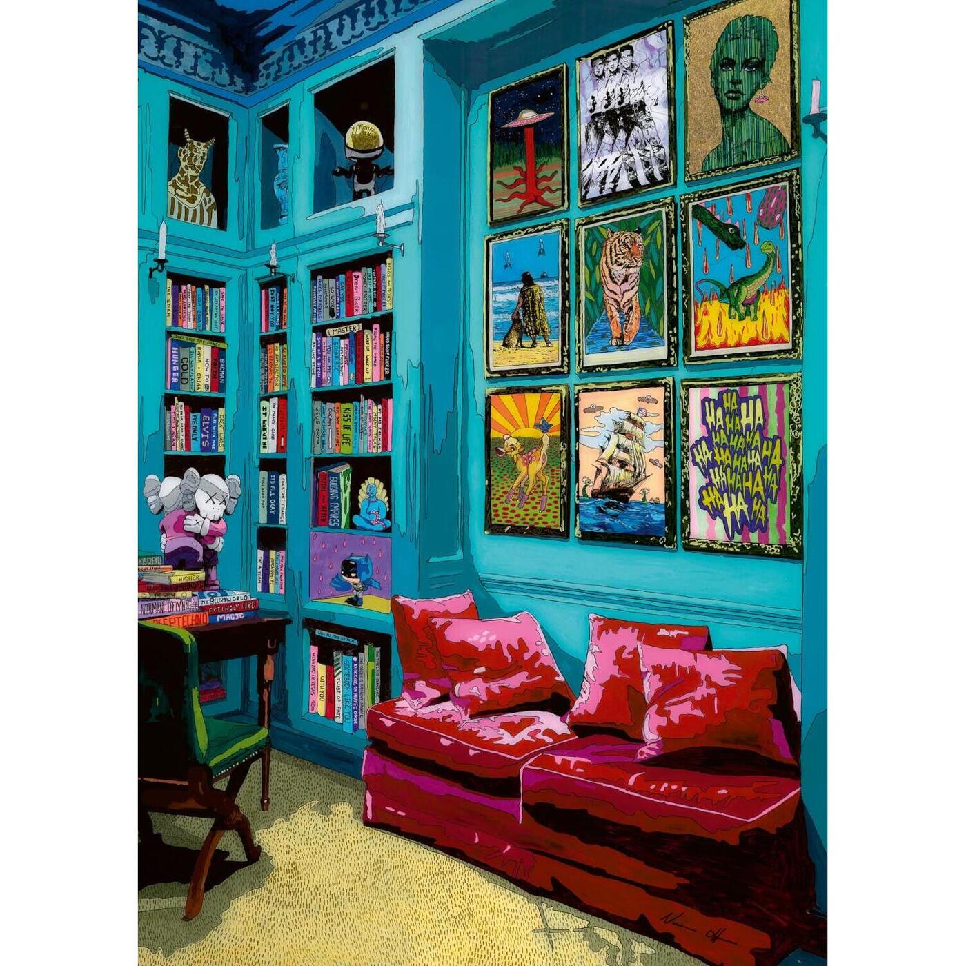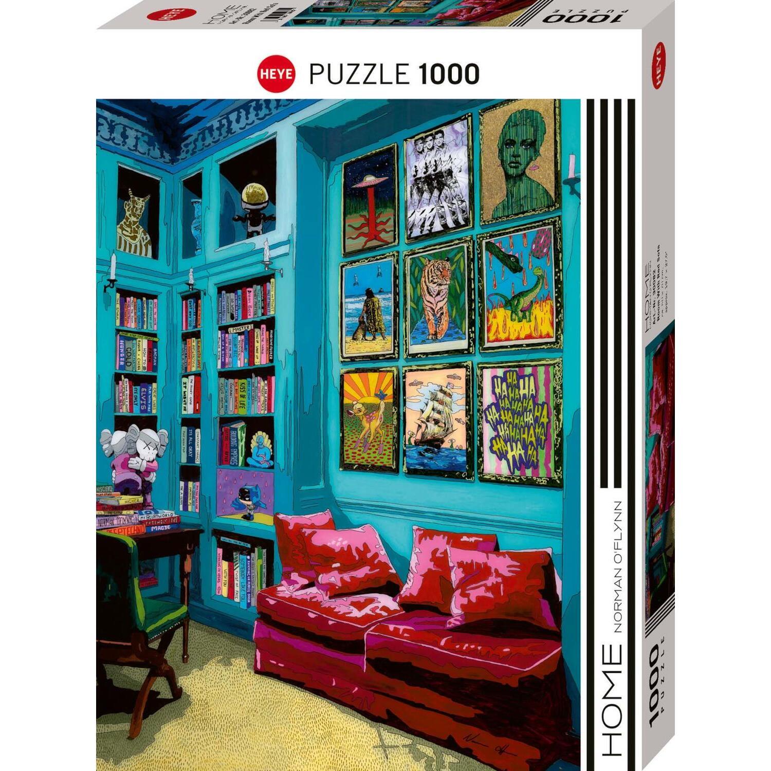 Was kann es Schöneres geben als Kunst, Bücher und ein ultragemütliches rotes Sofa?! Nur eins: Ein Puzzle mit Kunst, Büchern und einem ultragemütlichen roten Sofa. 1.000 Teile; Maße Puzzle: 500 x 700mm