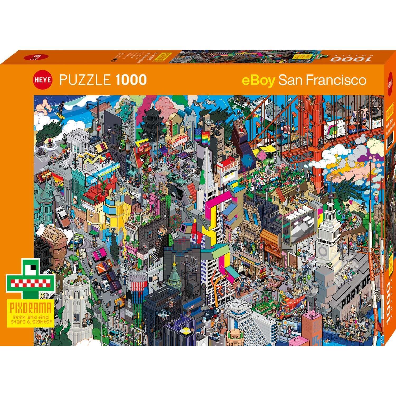 If you're going to San Francisco be sure that you'll find Blockbob there! Aber nicht nur diese ikonische Pixelfigur, sondern auch viele andere Stadtbesonderheiten! 1.000 Teile; Maße Puzzle: 500 x 700mm