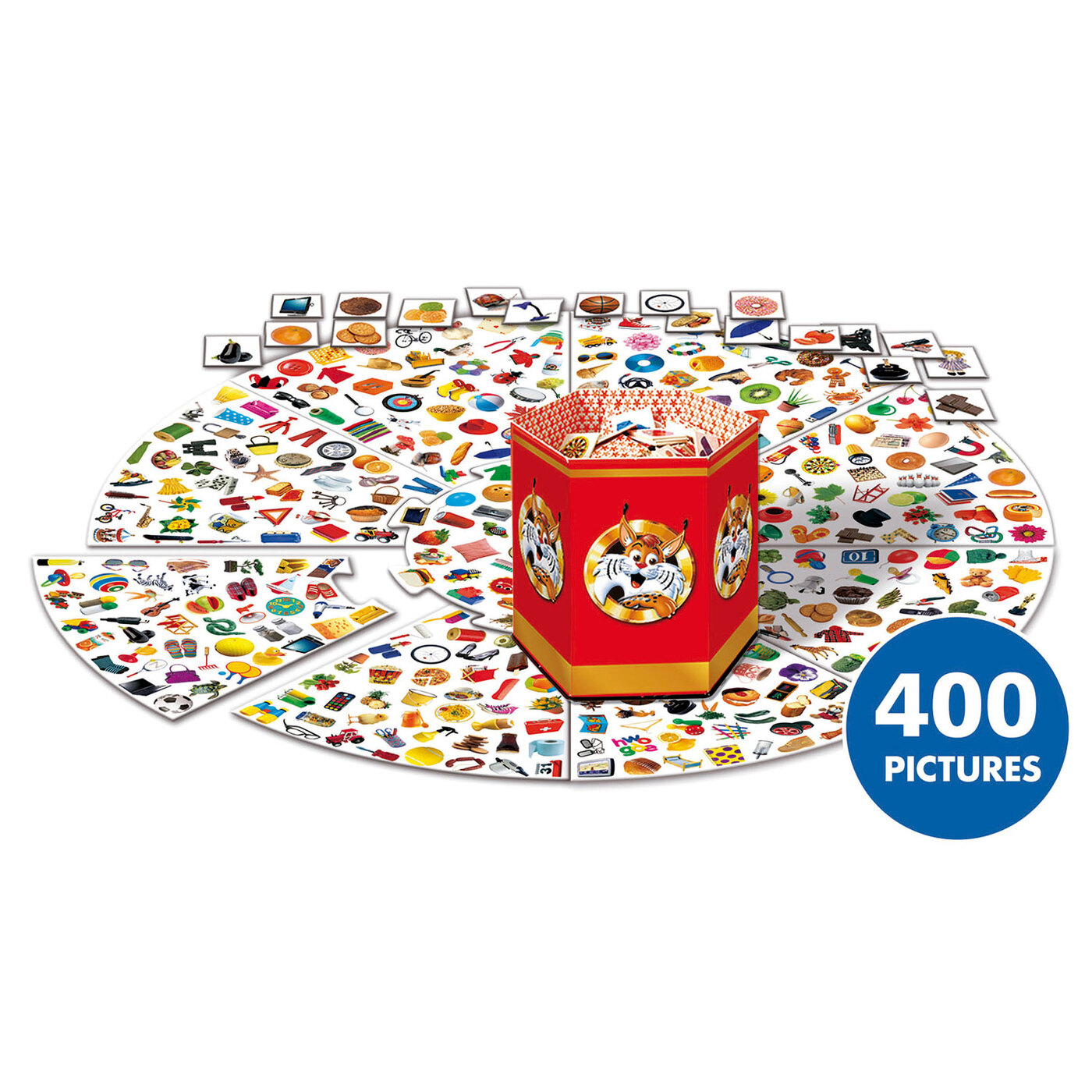 Schlaufuchs Familie bringt Spaß & Action auf den Spieletisch! Breitet das große Wimmelbild vor euch aus und zieht drei Motive – wer findet die Motive am schnellsten und markiert sie mit einem Plättchen? Viele Bilder ähneln sich in Farbe und Form … gar nicht so einfach hier den Überblick zu behalten! Seid schlau und schnell wie ein Fuchs und findet eure Motive am Schnellsten.