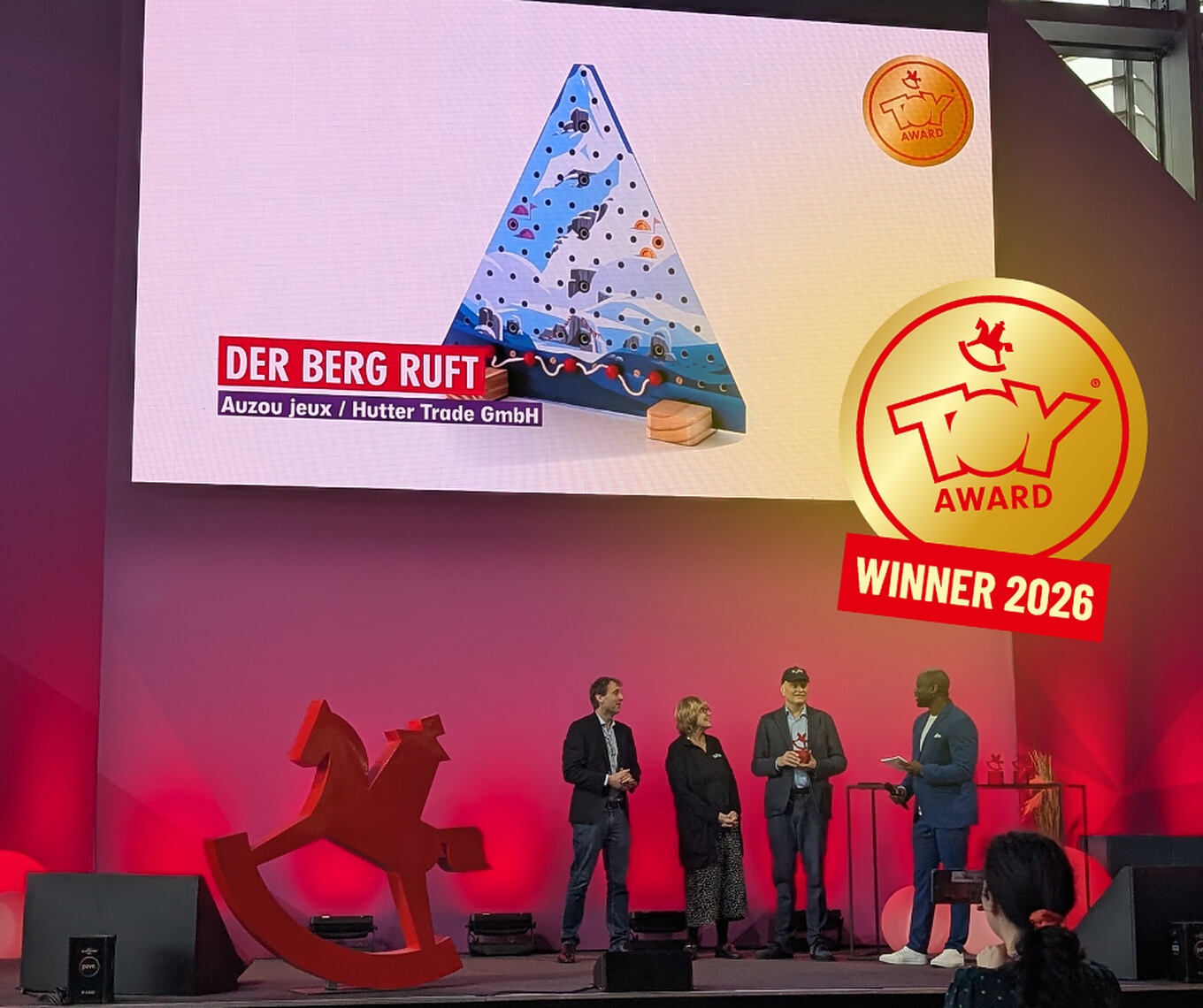 Im Rahmen der Spielwarenmesse in Nürnberg wird der Toy Award durch eine international besetzte Jury vergeben. Die Expertinnen und Experten aus den Bereichen Handel, Industrie, Marktforschung, Spielzeugsicherheit und Nachhaltigkeit bewerteten und prüften dieses Jahr 609 innovative Produkte. Das 3D-Brettspiel DER BERG RUFT von Auzou (im Vertrieb von Hutter Trade) wurde mit dem Toy Award in der Kategorie Pre-School ausgezeichnet. „Ein stimmiges Gesamtpaket mit gutem, abwechslungsreichem Spielmodus“ lobt die Jury das Spiel. Hermann Hutter, Geschäftsführer von Hutter Trade, und Gauthier Auzou, Geschäftsführer von Auzou, freuen sich über den gelungenen Auftakt für die Messe: „So eine Auszeichnung bestärkt uns in dem Anliegen anspruchsvolle Spiele für Kinder und Familien zu entwickeln. Besser kann die Messe für uns kaum starten!“