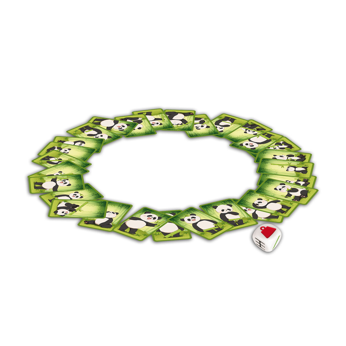 Sucht, vergleicht und schnappt euch die Pandas! Der Würfel gibt in jeder Runde vor, welche Bedingung gerade gefragt ist: Soll der Panda möglichst klein, groß, leicht oder schwer sein bzw. sein Bambusstab kurz oder lang? Ihr spielt gleichzeitig und nehmt jeweils eine Panda-Karte aus der Kartenauslage, die euch passend erscheint. Danach dreht ihr eure Karten um und vergleicht die Angaben auf den Rückseiten miteinander. Wer die Bedingung tatsächlich bestmöglich erfüllt hat, behält seine Karte als Punkt. Ihr spielt so lange, bis jemand sich eine bestimmte Anzahl Panda-Karten schnappen konnte.