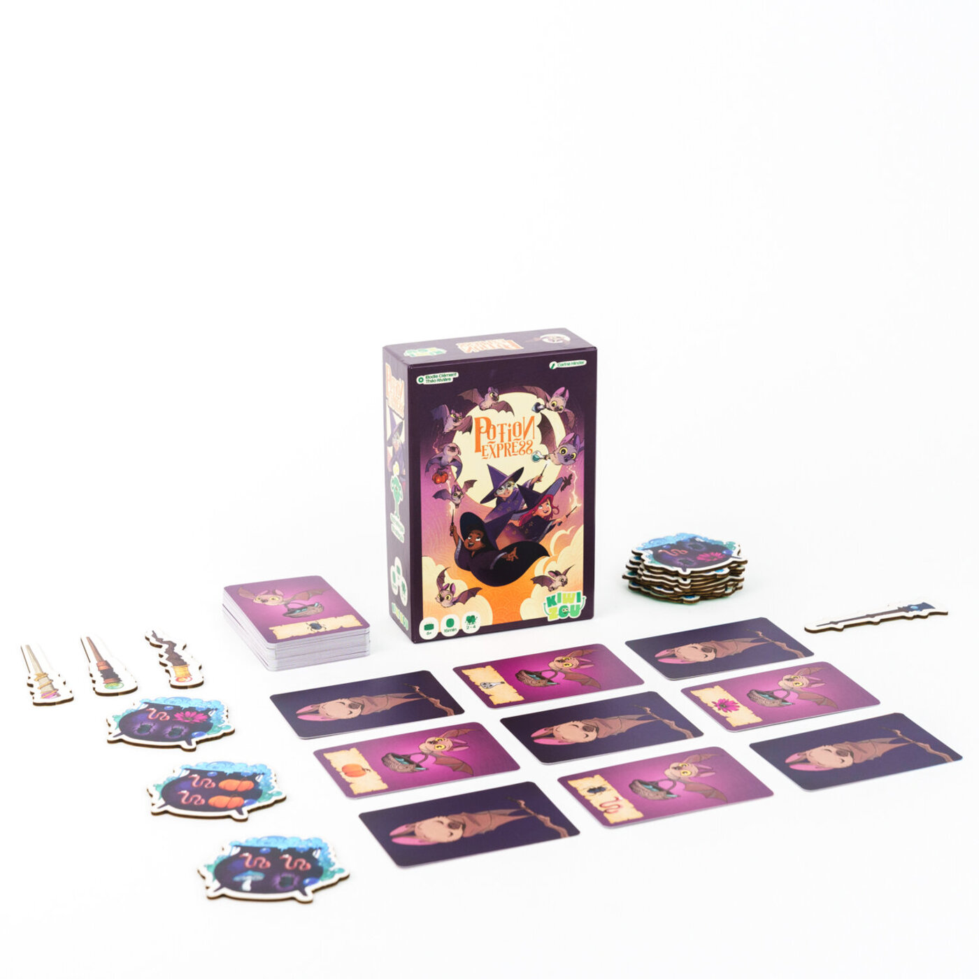 Schnell, schnell – ihr habt keine Zeit zu verlieren! Der Mond ist gerade aufgegangen, und schon machen sich bei „Potion Express“ alle zum Abflug bereit, um die Aufträge der verschiedenen Dorfhexen zu erfüllen. Es gilt, Kürbisse, Pilze und Regenwürmer zu besorgen – heute Nacht ist viel zu tun!